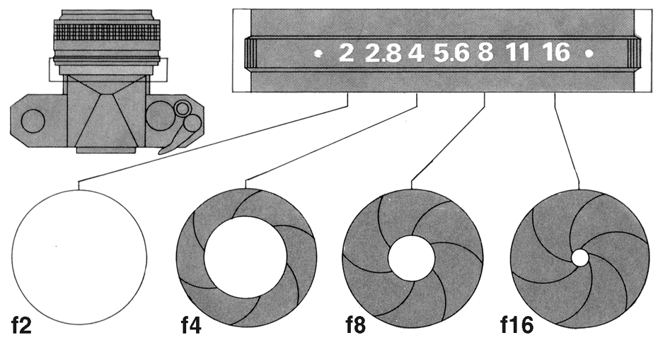 4) Then I set my aperture (read more about that here). I choose my aperture by counting the people in the shot (or if it’s a landscape/macro, I decide how much I want in focus). I usually use the rule that 4 people = minimum of f/4 aperture, 8 people I should go with f/8 or higher… this is a loose rule, but one that works for me (I also determine if everyone is on the same focal plane and focus on the front person, to keep the majority of the shot in focus). Now, if I want that blurry background look (or some beautiful bokeh) I keep my aperture pretty wide open. I tend to start with an ap of f/2.2 or so for pics of Addie alone. I could go wider, but I am a wimp and like to keep a tack sharp focus. (Keep in mind the majority of consumer kit lenses (ok, all of them) don’t go that wide. See diagram below, wide open= blurry background, tightly closed = everything is in focus)